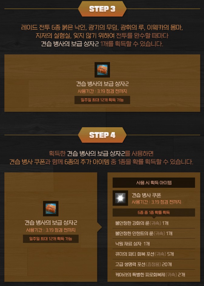 견습 병사의 보급 상자 2는 3월 19일 점검 전까지 사용가능하며
