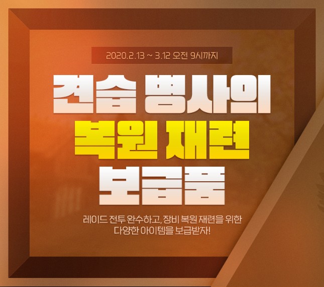 게임 이벤트 이름은 견습 병사의 복원 재련 보급품 이벤트입니다!