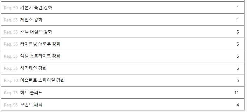 이후 스킬은 체인소 러시를 제외하고 모두 마스터하는것을 목표로 하시면 됩니다.