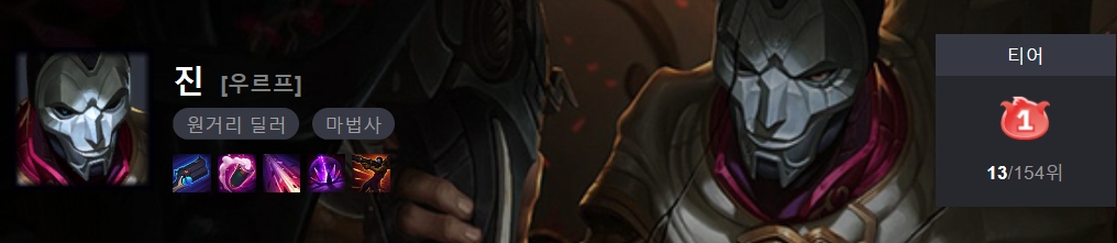 우르프 진은 현재 154개 챔피언 중에서 13위로 상당히 높은 성적을 보여주고 있습니다.