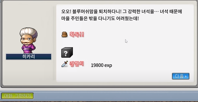 그다음은 마지막 퀘스트 블루머쉬맘을 잡으시면 됩니다. 블루머쉬맘 위치는 버섯의 전당에 있습니다. 블루머쉬맘 젠 시간은 10시간 ~ 12시간 사이라고 합니다.