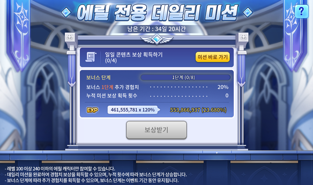 7월에 등장한 두 번째 신규 오리지널 캐릭터 ‘에릴’을 위한 전용 이벤트도 진행됩니다. 이 이벤트는 9월 26일까지 일일 미션을 완수하면 경험치 보상을 제공하며, 미션 보상 획득 횟수에 따라 추가 보너스 경험치도 받을 수 있습니다. 또한, 매일 추가로 제공되는 '오늘의 콘텐츠 미션'을 완료하면 '보라 경험치 증가권 Lv.2 (15분)', '경험의 코어 젬스톤' 등 다양한 보상을 획득할 수 있습니다. 에릴을 육성하는 유저들에게는 캐릭터를 더욱 빠르게 성장시킬 수 있는 좋은 기회입니다.