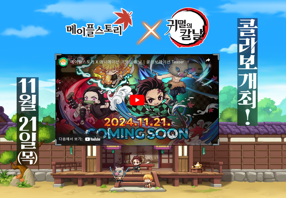 드디어 메이플 스토리 X 귀멸의 칼날 콜라보가 나온다고 합니다!