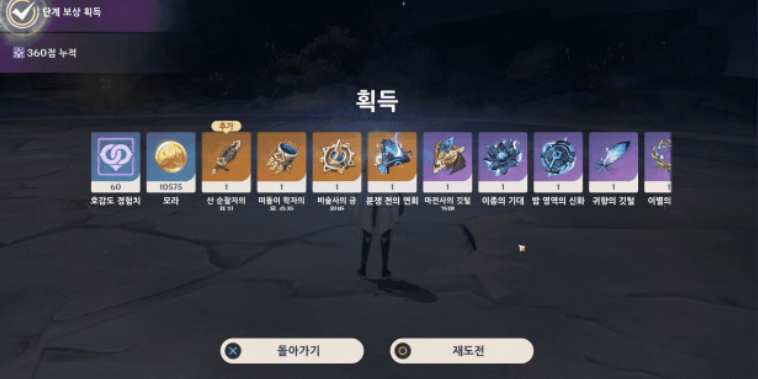 전투는 보스 중심 구성으로, 반복 플레이 시 제압 명성 점수가 쌓이고, 일정 점수마다 보너스 성유물을 얻을 수 있습니다. 특히, 점수가 1200점에 도달하면 제압 보상을 수령할 수 있습니다.