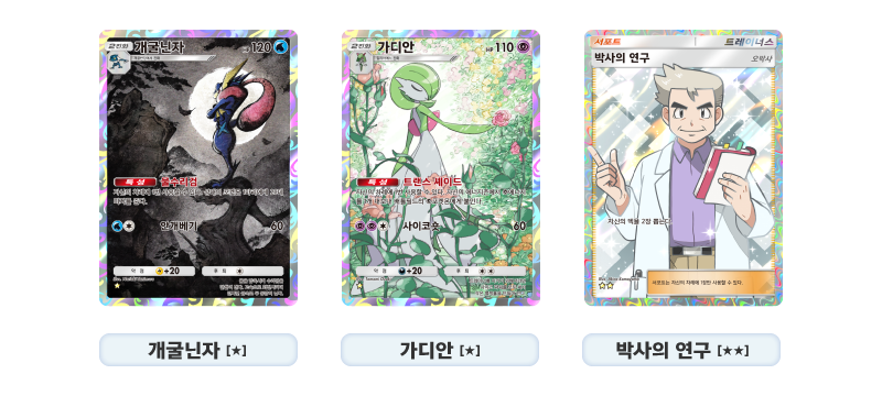 1팩에는 총 4장의 카드가 들어 있으며, 마지막 4번째 카드에는 반드시 ♦♦♦♦ 이상 등급의 카드가 포함되어 있습니다. 즉, 매번 팩을 열 때마다 최소 1장은 고급 카드가 보장된다는 점에서 컬렉터들에게는 정말 매력적인 기회입니다.