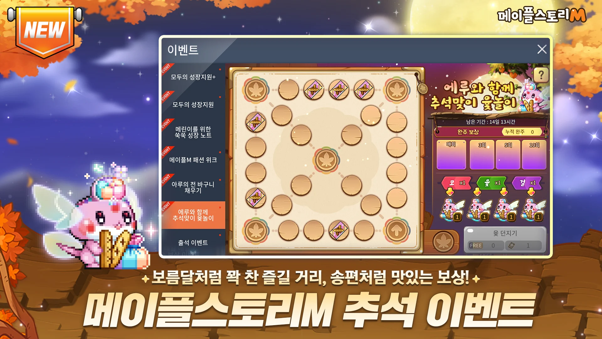 - 콘텐츠: 추석을 맞아 메이플M에서 '에루'와 함께 전통 민속놀이 윷놀이를 즐길 수 있습니다.