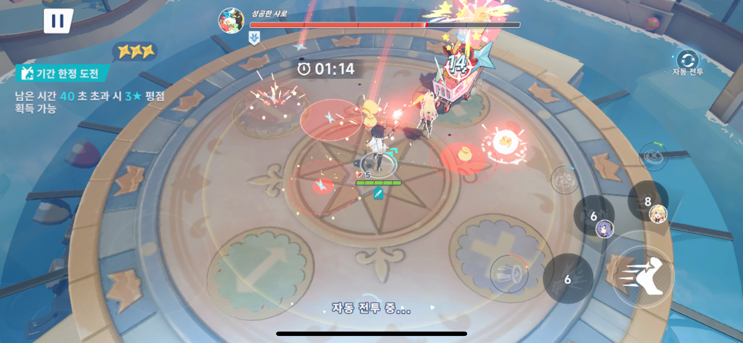 적이 범위 안에 들어오면 자동 공격이 가능하고, 스킬 타이밍과 이동 조작만 직접 컨트롤하면 되기 때문에 조작 난이도가 높지 않습니다.