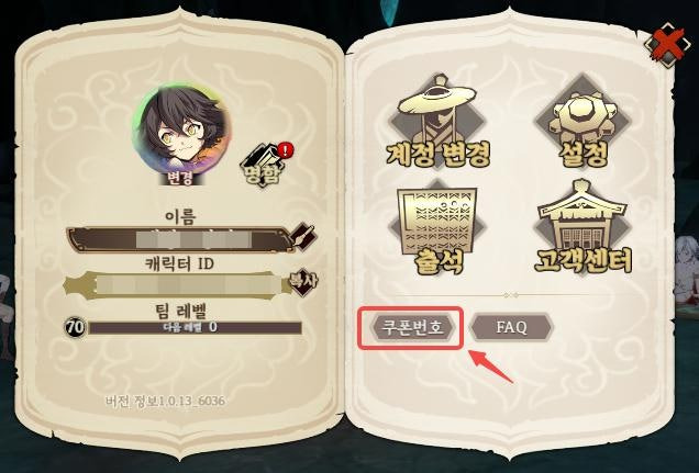 쿠폰 번호를 입력하고 우편함에서 보상을 수령합니다.