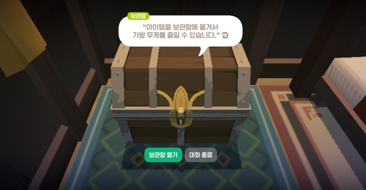 아이템 정리가 힘들다면 마을 창고 보관함을 꼭 이용해야 합니다. 기본 200칸이 제공되고, 데카를 사용해 최대 600까지 확장할 수 있습니다.