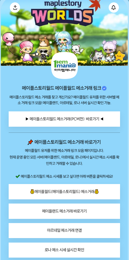 👉 아래 링크에서 메이플랜드 메소 시세 확인 후,