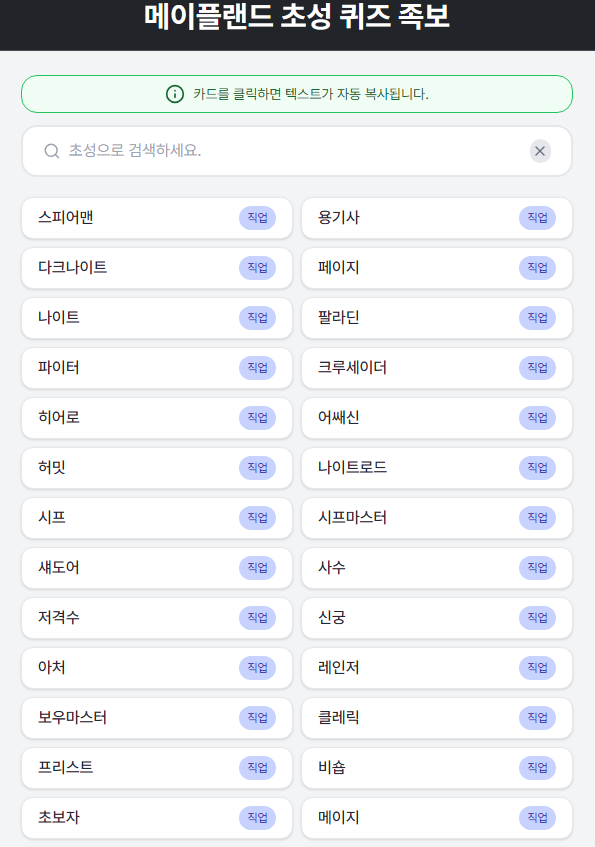 메이플랜드 초성 퀴즈 검색 사이트 - 검색 후 복사로 퀴즈 만점 받기