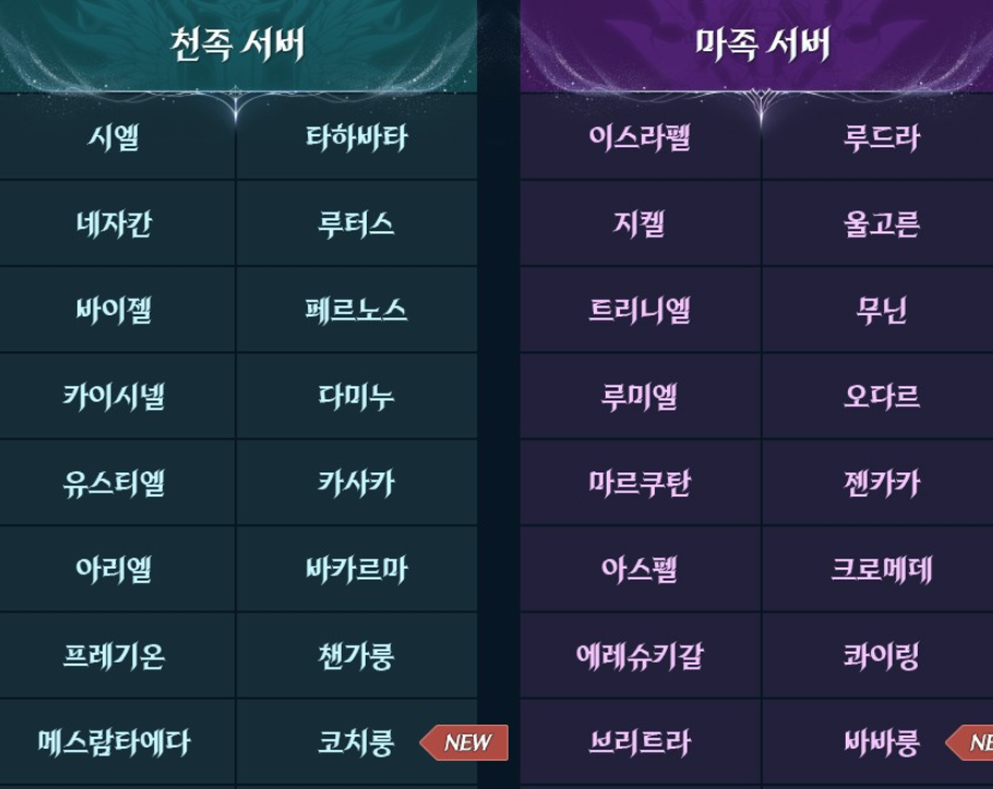 - 인기 서버: 시엘(천족) · 이스라펠(마족)