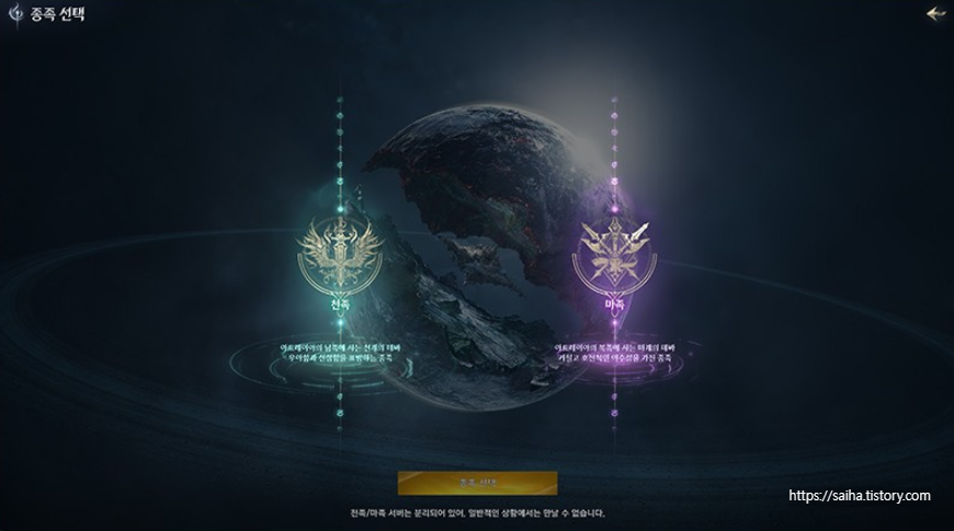 아이온2는 서버 선택에 앞서 천족·마족 중 종족 선택이 먼저입니다.