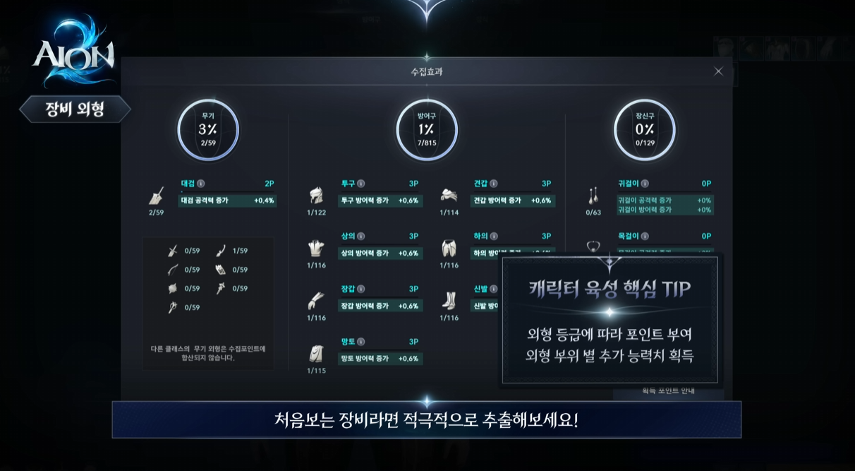 | 외형 수집 | 외형 포인트로 추가 능력치 확보 |