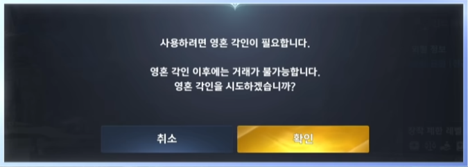 | 영혼 각인 | 첫 장착 시 능력치·스킬 강화 부여, 조율·초기화 가능 |