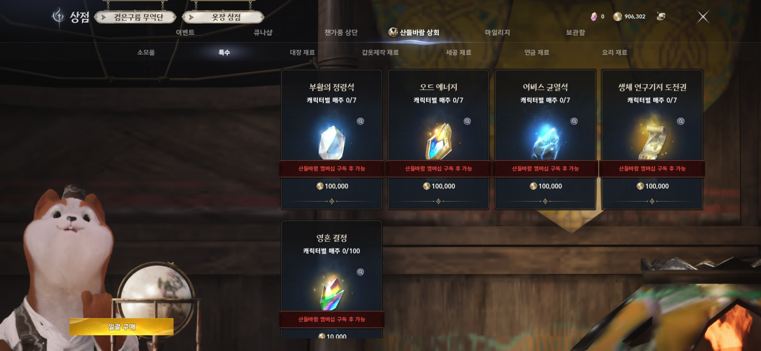 개인적으로 이곳에서 구매하는 아이템은 반필수급입니다. (부활의 정령석·오드 에너지·영혼 결정 등)