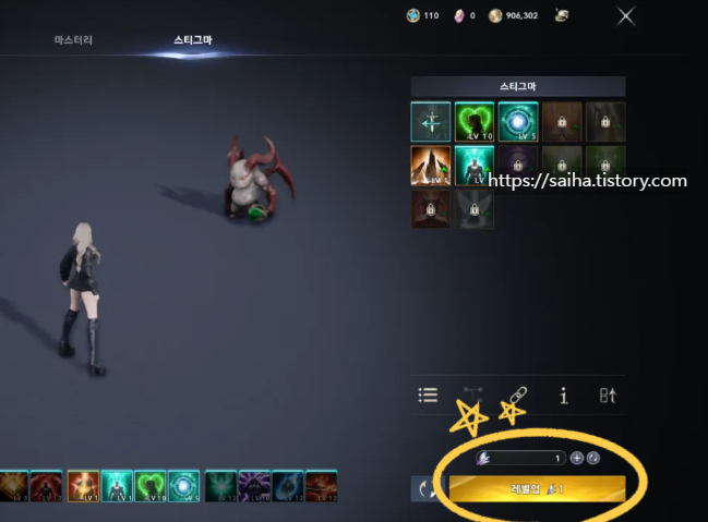 사용처: 스티그마 스킬 레벨업