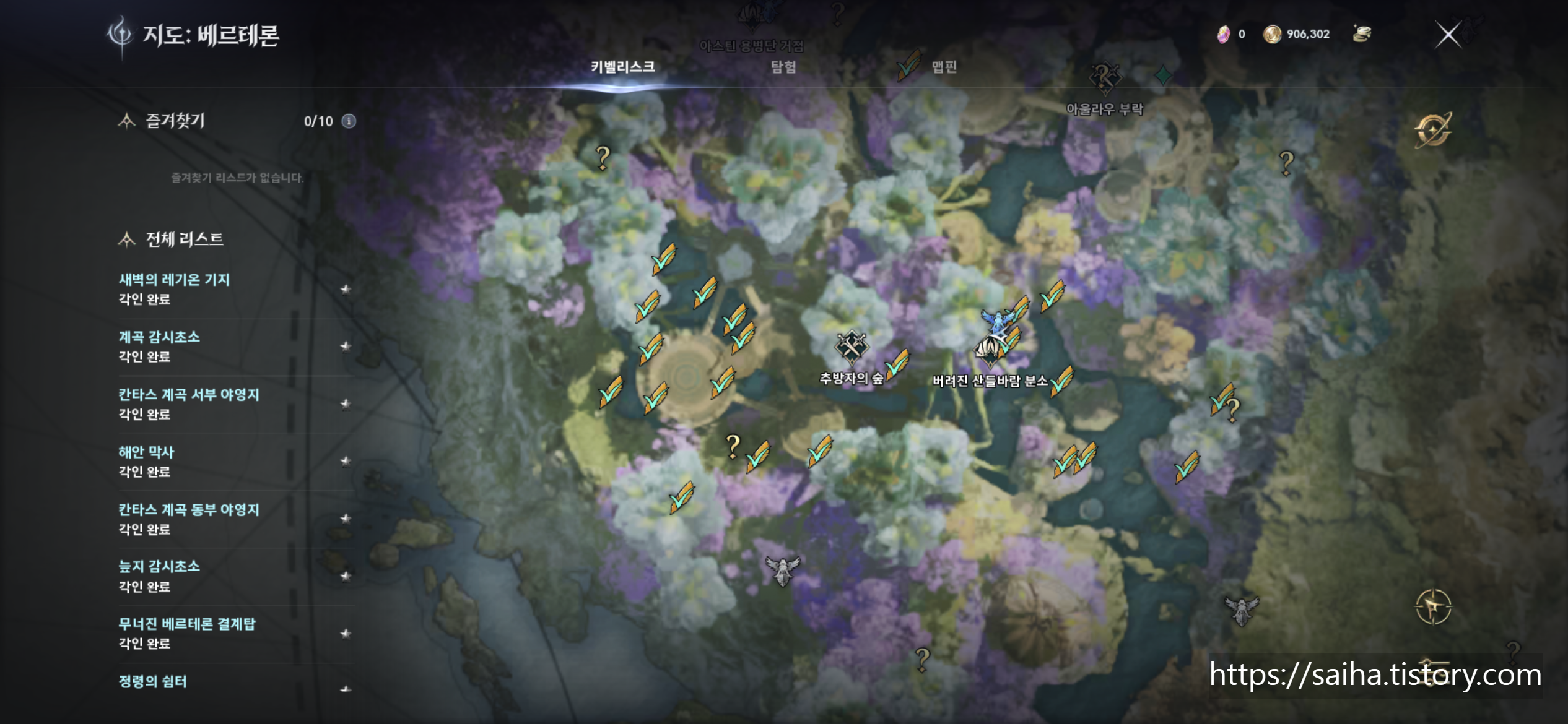 천족/마족 560개 위치 중 가장 정리가 잘 된 자료는 인벤에 공유된 통합 지도입니다.