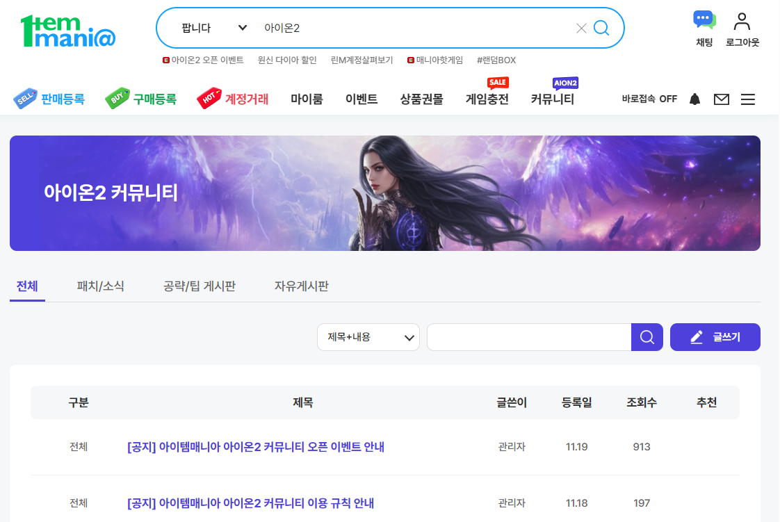 아이온2 커뮤니티도 생겨서 더 많은 정보를 얻을수 있다고 합니다!