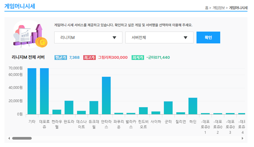 최근 거래가격 / 15일/3개월 그래프 / 서버별 평균 시세 / 최고가 기록