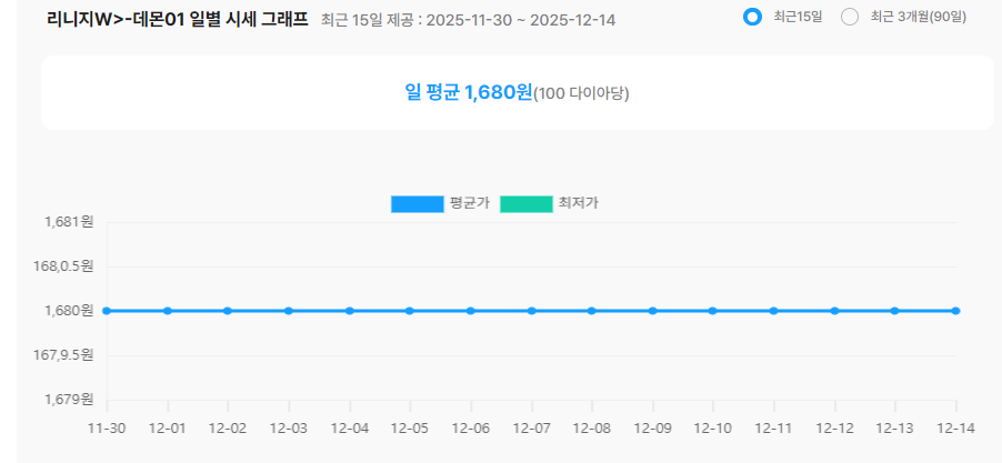| 리니지W 2025/12/14일 기준 다이아 시세 | |||||
