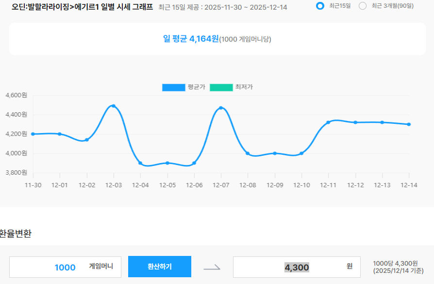 | 오딘 발할라 라이징 게임 머니 시세 2025-12-14일 기준 | |||||