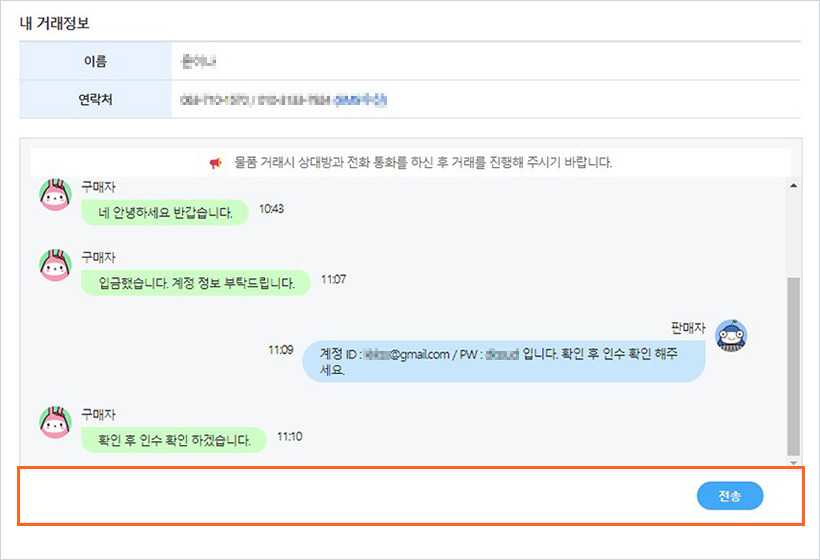 반드시 공식 플랫폼(아이템매니아 등)에서 거래 / 거래 내역과 판매자 평점도 체크 필수