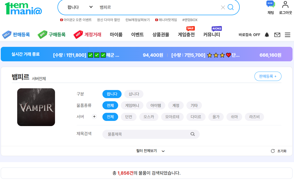 뱀피르 계정거래는 아이템매니아가 가장 현실적인 선택