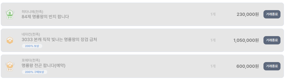 원정·정복·던전 출처 명시 등 신뢰 요소가 가격에 반영되고 있다는 의미다.