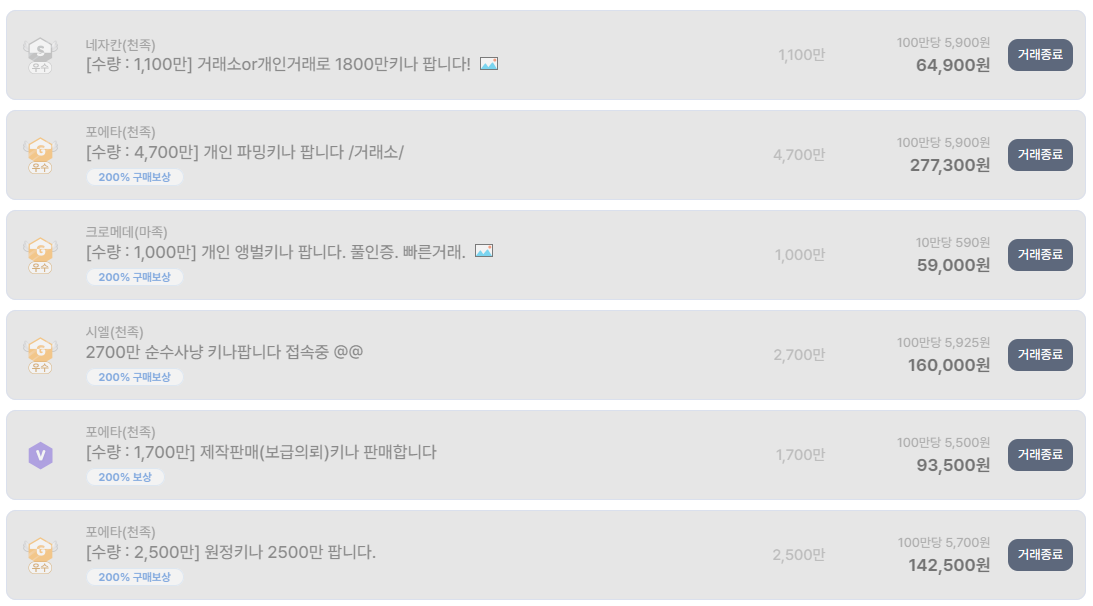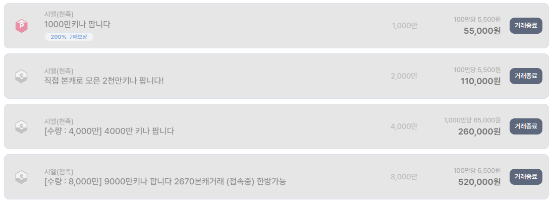 2. 시엘 서버(천족) 거래량이 압도적인 이유