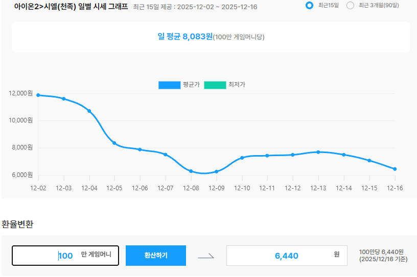 이번 글에서는 아이템매니아에서 실제 거래 종료된 데이터만을 기준으로 현재 아이온2 재화 시세와 거래 트렌드를 정리해본다.
