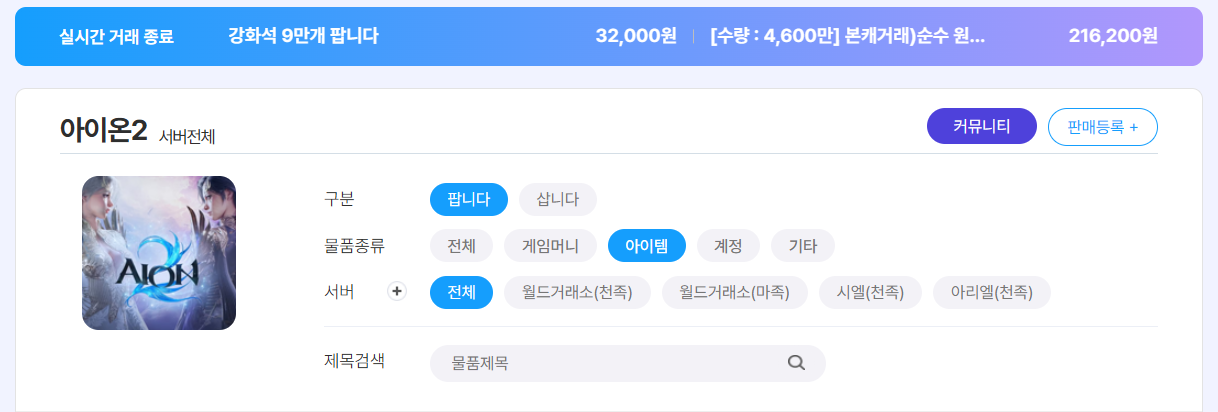아이온2 아이템 거래, 지금 가장 활발한 이유