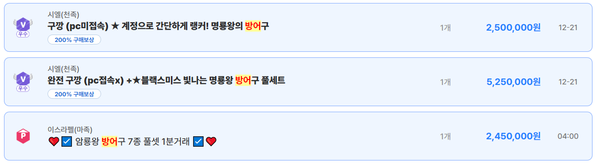 실제 아이템매니아 거래를 보면
