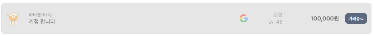 - 구깡 계정: 구깡 계정도 꾸준히 거래되고 있지만, 기본적인 장비와 레벨만 갖추어진 상태라 가격이 낮습니다. 이 계정들은 대체로 15,000원~50,000원 사이로 거래되고 있으며, 기본적인 아이템을 갖추고 있거나 스펙업이 필요한 상태입니다.