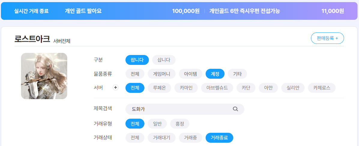 로스트아크는 시즌과 패치 흐름에 따라 계정 거래의 분위기가 빠르게 변하는 MMORPG다. 특히 최근 몇 년간 가장 안정적인 수요를 보여주는 포지션은 단연 서포터 계열이며, 그중에서도 도화가는 출시 이후 꾸준히 ‘가성비 서포터’라는 평가를 받으며 계정 거래 시장에서도 확실한 입지를 다져왔다. 이번 글에서는 아이템매니아에서 실제 거래 종료된 도화가 계정 사례를 기반으로, 현재 시세 구조와 거래 트렌드를 정리해본다.