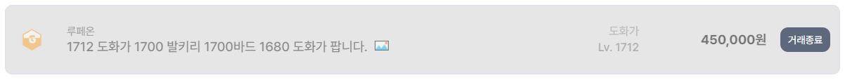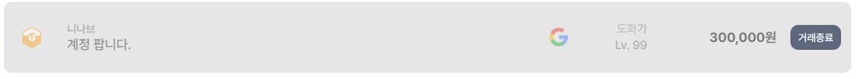 니나브 서버의 도화가 계정은 다소 특이한 사례다. 레벨 표기는 99로 되어 있지만, 30만 원이라는 가격에 거래 종료된 점을 보면 단순 전투력보다는 계정 내 자산, 재화, 혹은 다른 고레벨 캐릭터 보유 가능성이 반영된 것으로 보인다. 로스트아크 계정 거래에서는 종종 이런 ‘정보 비공개형 계정’이 평균 시세보다 높게 형성되기도 한다.