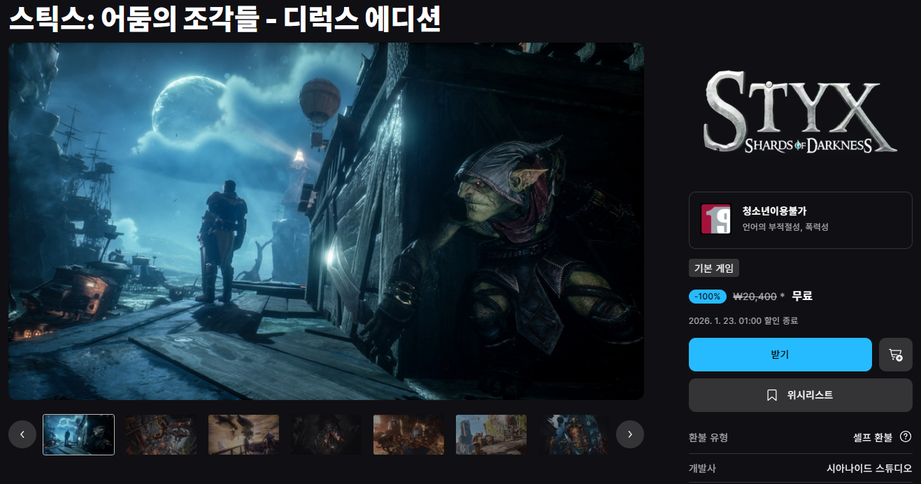 매주 게이머들을 설레게 하는 에픽게임즈 스토어의 무료 배포 소식입니다. 이번 주 주인공은 독특한 매력을 가진 고블린 암살자의 여정을 담은 스틱스: 어둠의 조각(Styx: Shards of Darkness) 디럭스 에디션입니다. 잠입 액션 장르를 선호하는 분들에게는 이미 정평이 나 있는 작품인데요. 이번 포스팅에서는 게임의 상세 정보와 디럭스 에디션 구성품, 그리고 사양까지 꼼꼼하게 정리해 보겠습니다.