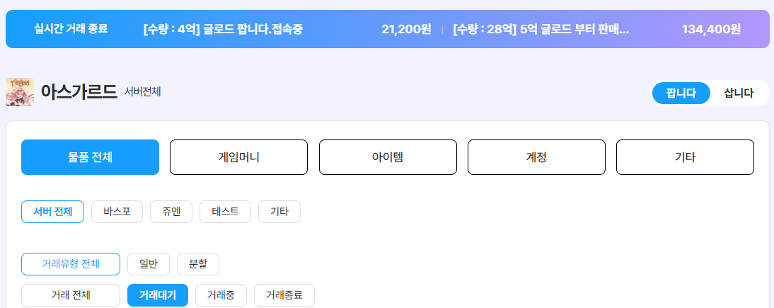 장수 온라인 RPG 아스가르드는 최근에도 고정 유저층을 중심으로 활발한 아이템 거래가 이어지고 있다. 특히 쥬엔 서버는 고강화 장비, 해방 아이템, 희귀 도안과 함께 글로드 거래까지 폭넓게 이루어지고 있어 서버 내 경제 흐름을 파악하기에 가장 좋은 기준점이라 할 수 있다. 이번 글에서는 아이템매니아에 실제로 등록되고 거래된 내용을 바탕으로, 현재 아스가르드 쥬엔 서버의 주요 거래 동향과 시세 흐름을 정리해본다.