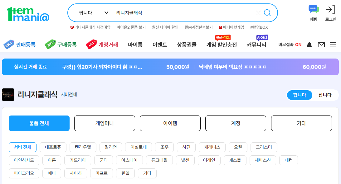 리니지 클래식은 시간이 지나도 계정 거래와 닉네임 가치가 꾸준히 유지되는 대표적인 클래식 MMORPG다. 특히 아이템매니아를 보면 하루에도 수십 건의 계정 매물이 올라오며, 서버별로 선호 직업과 닉네임 유형에 따라 가격대가 뚜렷하게 갈리는 흐름이 보인다. 이번 글에서는 아이템매니아에 실제 등록된 거래 사례를 바탕으로, 최근 리니지 클래식 계정 거래 동향과 시세 흐름을 정리해본다.