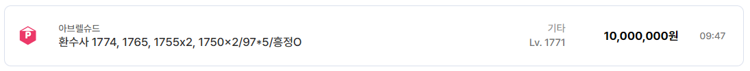특히 9/7 돌, 올유각, 무기 고강, 카드 각성 상태가 명시된 계정들은 흥정 없이도 빠르게 소화되는 경향을 보인다. 가장 상단에는 1770 이상 다캐릭 계정이 존재한다. 환수사 다수 캐릭터를 포함한 계정이 1천만 원에 등록된 사례도 있는데, 더 이상 일반 유저 영역이 아닌 하드코어 과금층 혹은 즉시 최상위 콘텐츠를 노리는 수요층을 겨냥한 가격대다.