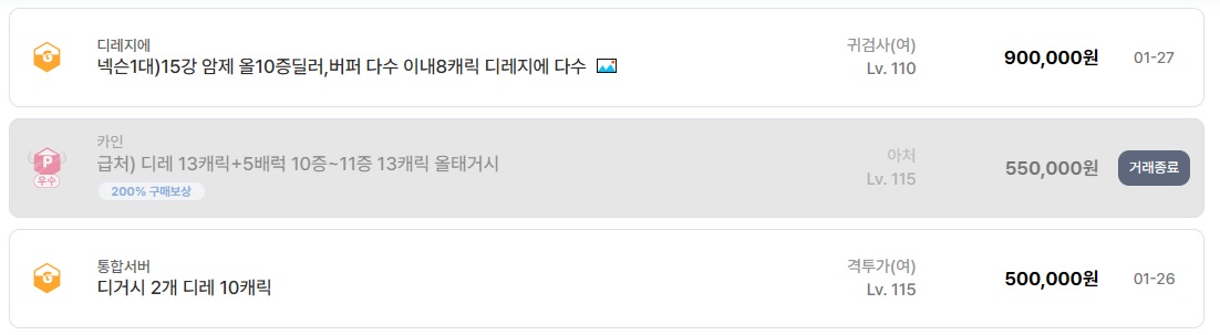 버퍼 계정의 안정성도 여전히 강력하다. 올 11증 이상 버퍼 다수를 보유한 계정은 딜러 중심 계정보다 파티 진입 장벽이 낮기 때문에 꾸준히 선택받는다. 쩔, 벞교, 레이드 지원이 가능한 구조를 갖춘 계정은 장기적인 플레이를 염두에 둔 유저들에게 특히 선호도가 높다. 실제로 올 11증 버퍼 7캐릭 이상 구성된 계정은 비교적 빠른 거래 속도를 보이고 있다.
