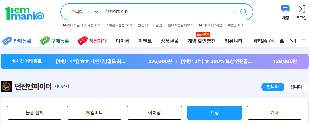던전앤파이터는 RPG 장르 중에서도 계정 단위의 완성도가 특히 중요하게 평가되는 게임이다. 캐릭터 하나의 스펙도 중요하지만, 여러 캐릭터를 동시에 운영할 수 있는 구조와 파밍 효율, 증폭 수치, 태거시 여부 등이 계정 전체의 체감 가치를 결정한다. 최근 아이템매니아에 실제로 등록되고 거래된 던전앤파이터 계정 내역을 살펴보면 이러한 흐름이 더욱 뚜렷하게 드러난다.