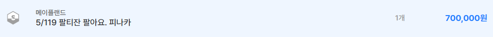 팔티잔은 전사 계열 중반 구간 무기입니다. 70만 원 선은 강화 수치 대비 무난한 가격입니다.