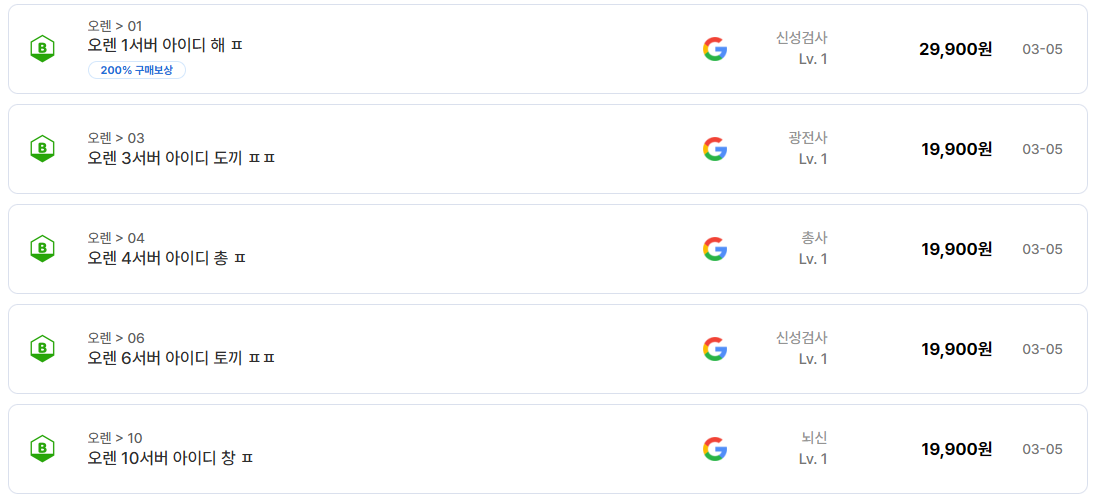 이번 글에서는 현재 등록되어 있는 실제 거래 내용을 기준으로 오렌 서버 닉네임과 계정 가격 흐름을 정리해보겠다.