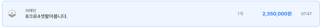 어레인 서버에서는 8크로 4셋 장비 판매 글이 약 235만 원에 등록되어 있는 상태다.