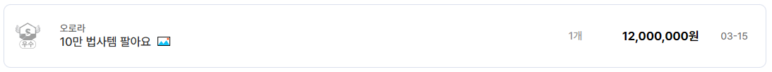 등록된 거래 글을 보면 약 1,200만 원 가격으로 법사 장비를 판매하는 글이 올라와 있다.