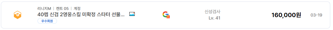 반면 중간 단계 계정도 꾸준히 거래되고 있습니다. 예를 들어 40레벨 신성검사 계정에 영웅 스킬 2개가 포함된 경우 약 160,000원에 거래되고 있으며, 65레벨 암흑기사 계정은 약 220,000원 수준에서 판매되고 있습니다. 이 구간은 ‘시간 투자 대비 효율’을 중요하게 생각하는 유저들이 많이 찾는 구간입니다.