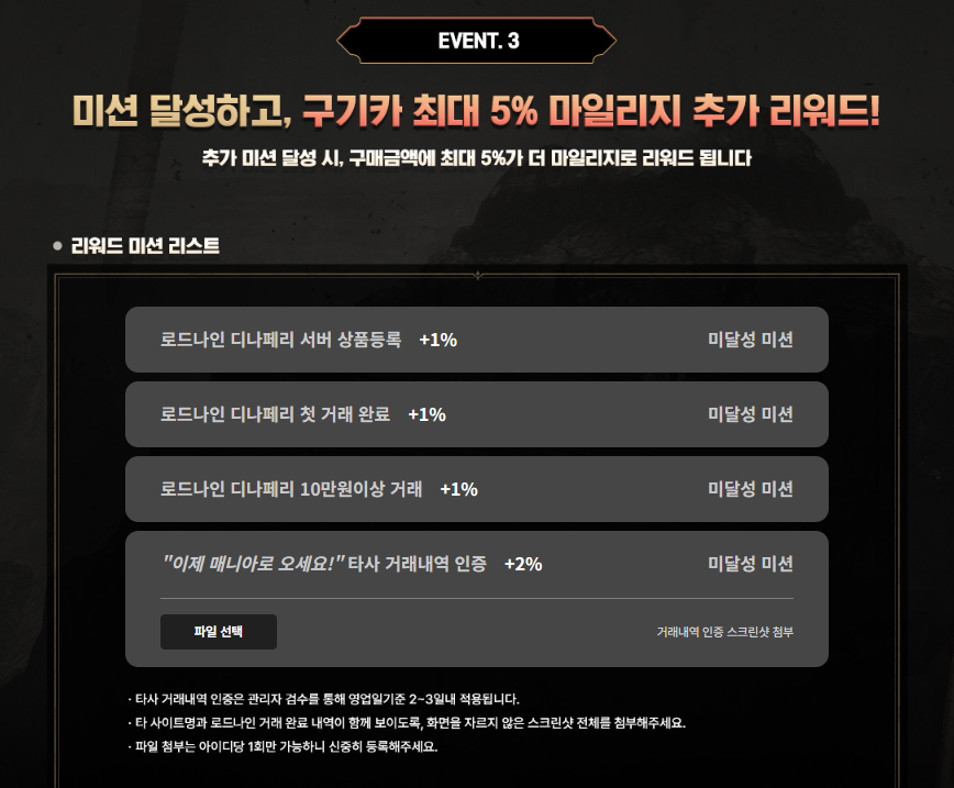 이벤트 3. 미션 달성 추가 마일리지 지급