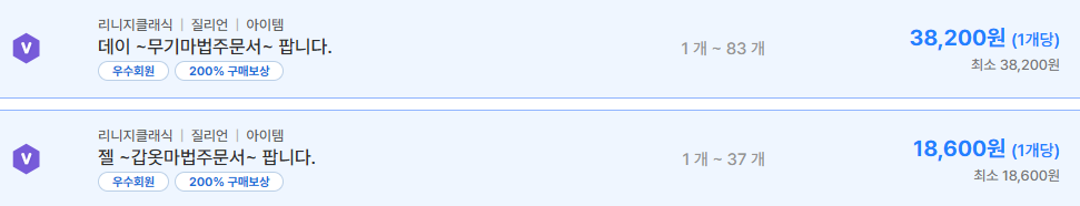 가장 먼저 눈에 들어오는 것은 기본 재료 성격의 아이템인 데이(무기 마법 주문서)와 젤(갑옷 마법 주문서)이다. 질리언 서버 기준으로 데이는 개당 약 38,200원, 젤은 약 18,600원 수준에서 거래가 등록되어 있다. 이 가격대는 단순 소모품이라기보다는 강화 성공 기대값이 반영된 금액이라고 보는 것이 맞다. 특히 데이는 무기 강화 핵심 재료이기 때문에 항상 젤보다 높은 가격대를 유지하는 경향이 있다.