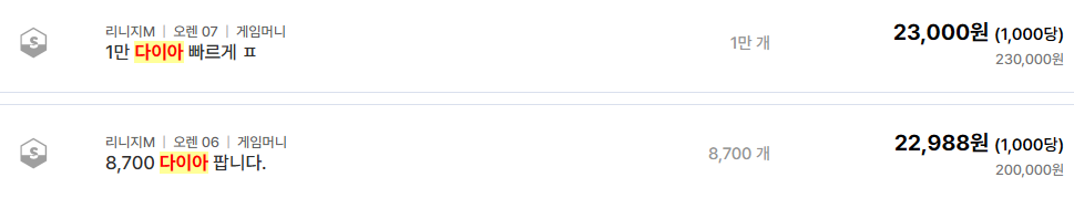 RPG 장르에서 꾸준히 거래가 이어지고 있는 대표 게임은 단연 리니지M입니다. 특히 다이아 중심의 재화 구조를 가지고 있기 때문에 아이템 거래보다도 게임머니 거래 비중이 훨씬 높고 실제 유저들도 효율적인 현질 루트를 찾기 위해 다양한 거래 데이터를 확인하는 흐름이 이어지고 있습니다.